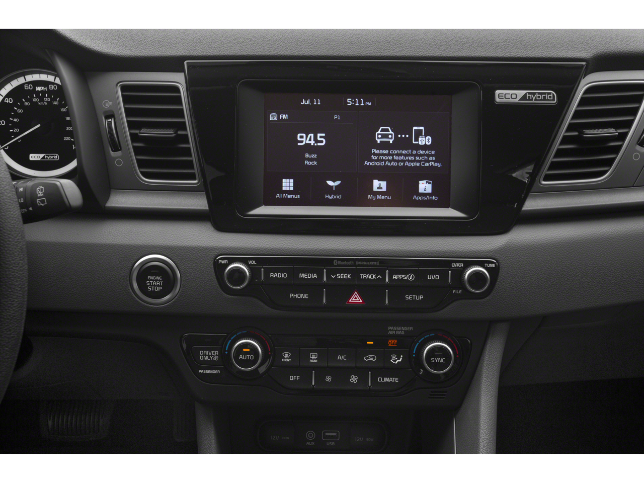 - Radio: AM/FM/MP3/SiriusXM Satellite -inc: 6 speakers, Bluetooth® wireless technology w/steering-wheel-mounted controls, 7" touchscreen w/UVO eServices and support for Android Auto and Apple CarPlay, USB and auxiliary input jacks