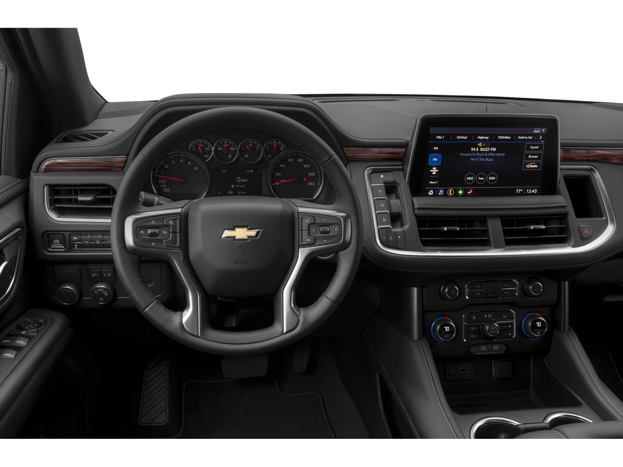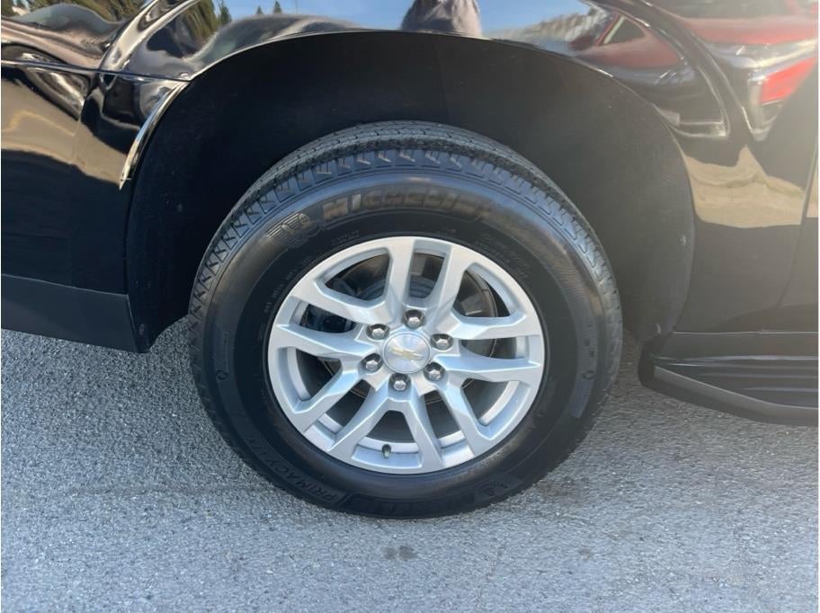 1st & 2nd Row Color-Keyed Carpeted Floor Mats, 2 USB Data Ports, 3.23 Rear Axle Ratio, 3rd row seats: split-bench, 4-Wheel Disc Brakes, 6 Speakers, ABS brakes, Air Conditioning, Alloy wheels, AM/FM radio: SiriusXM with 360L, Apple CarPlay/Android Auto, Auto High-beam Headlights, Automatic temperature control, Brake assist, Bumpers: body-color, Color-Keyed Carpeting Floor Covering, Compass, Delay-off headlights, Driver & Front Outboard Passenger Airbags, Driver door bin, Driver vanity mirror, Dual front impact airbags, Dual front side impact airbags, Electronic Stability Control, Emergency communication system: OnStar and Chevrolet connected services capable, Floor Console w/Storage Area, Four wheel independent suspension, Front anti-roll bar, Front Bucket Seats, Front Center Armrest, Front dual zone A/C, Front reading lights, Fully automatic headlights, HD Radio, Heated door mirrors, Illuminated entry, Infotainment Display, Leather steering wheel, Leather-Wrapped Steering Wheel, LED Daytime Running Lamps, Low tire pressure warning, Not Equipped w/Automatic Stop/Start, Not Equipped w/Steering Column Lock, Occupant sensing airbag, Outside temperature display, Overhead airbag, Overhead console, Panic alarm, Passenger door bin, Passenger vanity mirror, Power door mirrors, Power driver seat, Power passenger seat, Power steering, Power windows, Preferred Equipment Group 1LS, Premium audio system: Chevrolet Infotainment 3 Plus, Premium Cloth Seat Trim, Premium Smooth Ride Suspension, Radio: Chevrolet Infotainment 3 Plus System, Rain sensing wipers, Rear air conditioning, Rear anti-roll bar, Rear reading lights, Rear seat center armrest, Rear window defroster, Rear window wiper, Remote keyless entry, Remote Start, Roof rack: rails only, Security system, SiriusXM Radio w/360L, Speed control, Speed-sensing steering, Split folding rear seat, Spoiler, Steering wheel mounted a