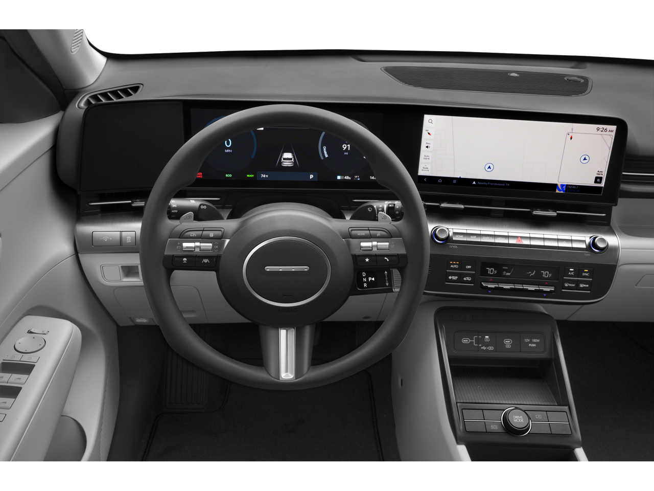 - Radio: AM/FM/HD Radio/SiriusXM -inc: 12.3" navigation (ccNC), 6 speakers, wireless Android Auto and Apple CarPlay, USB connectivity, dynamic voice recognition, BlueLink connected car system, WiFi hotspot, OTA software updates and shark-fin antenna