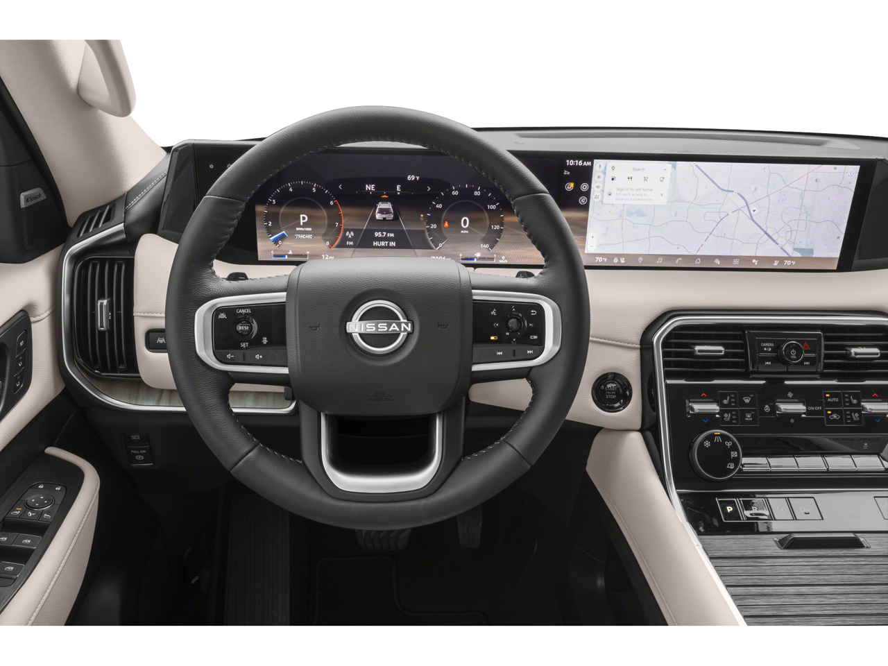 - Radio: NissanConnect w/SiriusXM 360L -inc: 12 speaker Klipsch audio system, 14.3" center touch-screen display, wireless Apple CarPlay and Android Auto, Google Assistant Maps and Playstore data, Alexa built-in, Nissan door to door connected navigation w/traffic information, Bluetooth® hands-free phone system, Bluetooth® streaming audio and messaging, voice recognition for audio features, hands-free text messaging assistant, Siri Eyes Free, USB port for compatible devices, advanced audio features, in-car 4G Wi-Fi hotspot and hybrid radio